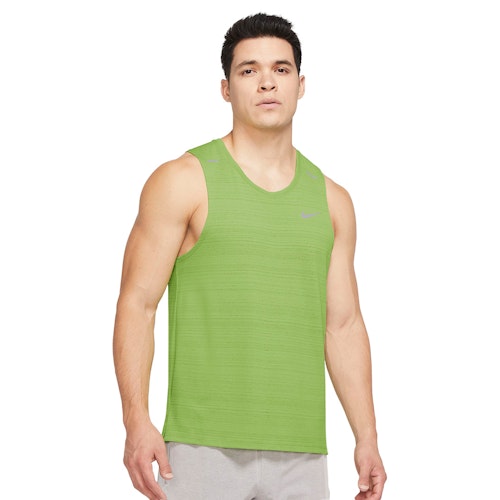 The Nike Dri-FIT Miler Tank Top for men is a comfortable running shirt without sleeves. The Dri-FIT technology keeps you dry during your run by effectively wicking away moisture. The mesh material offers extra ventilation and high breathability. The soft feel of the fabric reduces friction while running. The splits on the sides offer optimal freedom of movement.