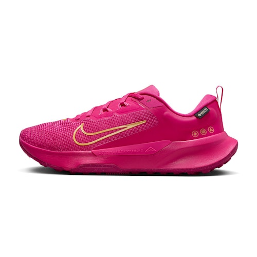 Article number: FB2065-600 Article group: Trail Running Shoes Collections: Nike Juniper Trail Colour: Pink Gender: Women Brand: Nike Shoe type: Neutral Cushioning: Minimum / moderate Forefoot height: 26 mm Heel height: 35 mm Offset: 9 mm Responsiveness: Minimum / moderate Support: Minimum Specifications: Waterproof, GORE-TEX lug depth: Low (0 – 3 mm) Trail type: All-round trail Width: Normal Weight: 200-300 gram Stack height: 30-40mm (high)