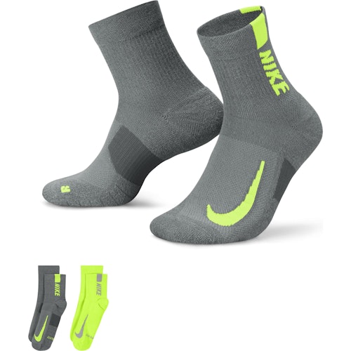 The Nike Multiplier Socks 2-pack are comfortable running socks for both men and women. The Dri-Fit material keeps you feet fresh and dry while running.