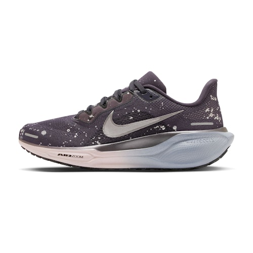 The rubber outsole provides excellent grip and traction while running. The forefoot is extra flexible thanks to the flex grooves in the outsole, ensuring a smooth ride. The rubber outsole features Nike's iconic waffle pattern, with short, honeycomb-shaped studs. This pattern provides grip on both dry and wet surfaces. Order now and discover the versatility of the Nike Pegasus 41 SE within days. -