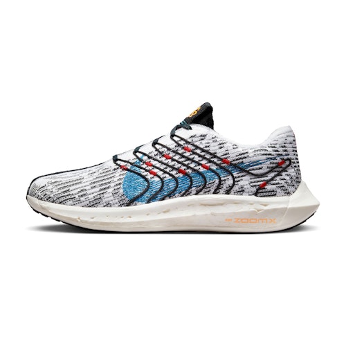 The Pegasus Turbo Next Nature features Flyknit technology with strong fibers for a light upper that offers strength at the same time. Recycled yarn, laces and inner lining make this fast shoe a sustainable choice.