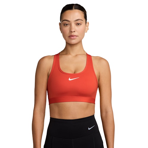 This sports bra offers medium support and is made for sports activities such as yoga, pilates and stretching. The bra can be worn during easy runs if you have a small cup size, during more intensive running sessions or if you do not have a small cup size, a high-impact bra is recommended. The Nike Swoosh Dri-FIT Medium Support Padded Sports Bra provides good support without a closed-in feeling. During intensive running sessions or workouts, your body temperature will remain at the right level thanks to the Nike Dri-FIT technology. Specially developed to effectively wick away sweat and keep your skin dry.