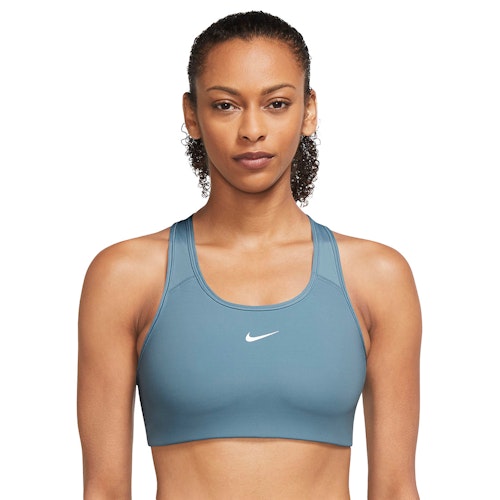 The Swoosh Medium-Support Sports Bra is a comfortable sports bra. The bra offers medium support and is suitable for medium-impact sports activities such as; running, spinning and fitness. The Nike Dri-FIT technology ensures good breathability, faster evaporation and a comfortable fit.