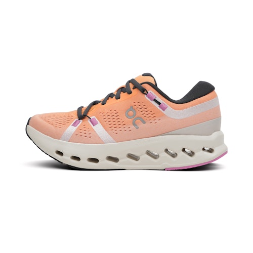 Article number: 3WF10103126 Article group: All-round Running Shoes Collections: On Cloudsurfer Colour: Orange Gender: Women Brand: On Shoe type: Neutral Cushioning: Moderate / maximum Forefoot height: 23 mm Heel height: 32 mm Offset: 9 mm Responsiveness: Moderate Support: Average Weight: 225 g Width: Normal