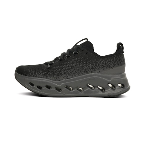 Article number: 3WF30220106 Article group: All-round Running Shoes Collections: On Cloudsurfer Colour: Black Gender: Women Brand: On Shoe type: Neutral Cushioning: Maximum Forefoot height: 31 mm Heel height: 37 mm Offset: 6 mm Responsiveness: Moderate Support: Average Weight: 262 g Width: Normal