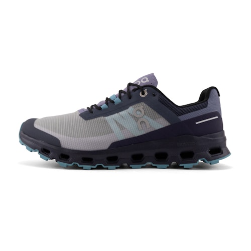 The Cloudvista is one of the lightest trail running shoes. The upper is made from over 70% recycled polyester and features a microfiber perforated tongue and TPU mudguard for added protection. The Missiongrip™ outsole provides traction with square studs in the heel and forefoot, as well as multi-angled studs in the shank and toes. All in all; tackle those trails carefree with the new On Cloudvista.