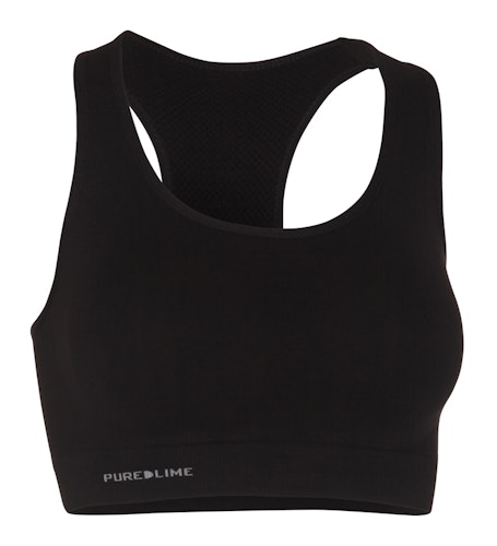 Article number: 0039-2000 Article group: Sports Bras Fit: Slim Colour: Black Gender: Women Brand: PureLime Material: 94% Polyamide, 6% Elastane