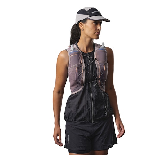 The Salomon Active Skin 12 Set is a functional running backpack, designed to take your trail running to the next level over long distances. This minimalist backpack is all about comfort and easily reaching your running essentials on the go. The SensiFit™ construction provides a hugging, snug fit without friction and the chest strap lets you improve the fit even more without having to stop!