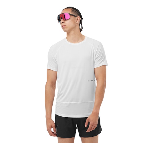 Article number: LC2195300 Article group: Short Sleeve Tops Fit: Regular Specifications: Reflective Colour: White Gender: Men Brand: Salomon Material: 59% polyamide 41% polyester