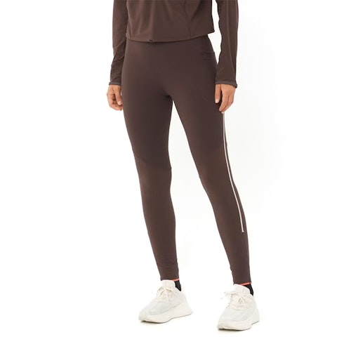 Article number: LC2437000 Article group: Long Tights Features: Drawcord, Pockets Fit: Slim Specifications: Reflective, Water-repellent Colour: Brown Gender: Women Brand: Salomon Material: 76% polyamide 24% elastane