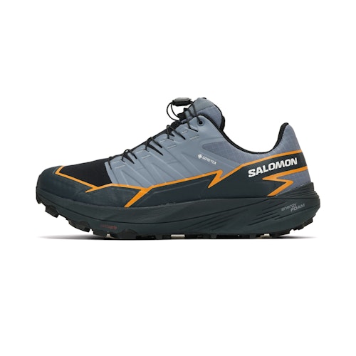 Article number: L47383100 Article group: Trail Running Shoes Collections: Salomon Thundercross Colour: Grey Gender: Men Brand: Salomon Shoe type: Neutral Cushioning: Moderate / maximum Forefoot height: 27 mm Heel height: 31 mm Offset: 4 mm Responsiveness: Moderate Support: Average Specifications: Waterproof, GORE-TEX, Quick laces lug depth: High (4,6 – 8 mm) Trail type: Technical trail Width: Normal Weight: 300+ gram Stack height: 30-40mm (high)