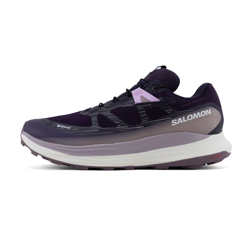 Article number: L47216700 Article group: Trail Running Shoes Collections: Salomon Ultra Glide Colour: Purple Gender: Women Brand: Salomon Shoe type: Neutral Cushioning: Moderate / maximum Forefoot height: 26 mm Heel height: 32 mm Offset: 6 mm Responsiveness: Moderate Support: Average Specifications: Waterproof, GORE-TEX, Quick laces Plate: Rock protection plate, Plastic plate Trail type: Soft ground Width: Normal