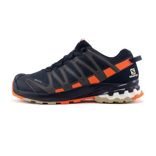 Article number: L41444400 Article group: Trail Running Shoes Collections: Salomon XA Pro 3D Colour: Blue Gender: Men Brand: Salomon Shoe type: Neutral Cushioning: Minimum / moderate Offset: 11 mm Responsiveness: Moderate Support: Average Specifications: Waterproof, GORE-TEX, Quick laces Trail type: All-round trail Width: Normal