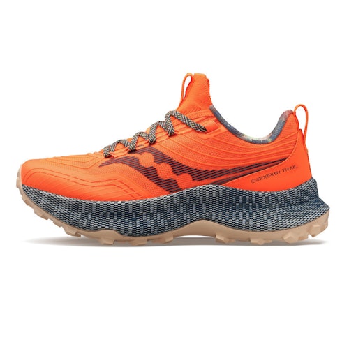 Article number: S10647-65 Article group: Trail Running Shoes Collections: Saucony Endorphin Colour: Orange Gender: Women Brand: Saucony Shoe type: Neutral Cushioning: Moderate / maximum Forefoot height: 32,5 mm Heel height: 36,5 mm Offset: 4 mm Responsiveness: Moderate Support: Average Weight: approx. 255 grams Trail type: All-round trail Width: Normal