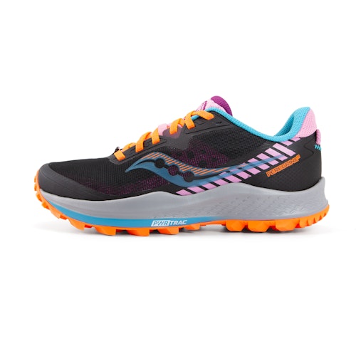 Article number: S10641-25 Article group: Trail Running Shoes Collections: Saucony Peregrine Colour: Black Gender: Women Brand: Saucony Shoe type: Neutral Cushioning: Moderate Forefoot height: 23 mm Heel height: 27 mm Offset: 4 mm Responsiveness: Moderate Support: Average Weight: approx. 270 grams Trail type: Technical trail, Trail race Width: Normal