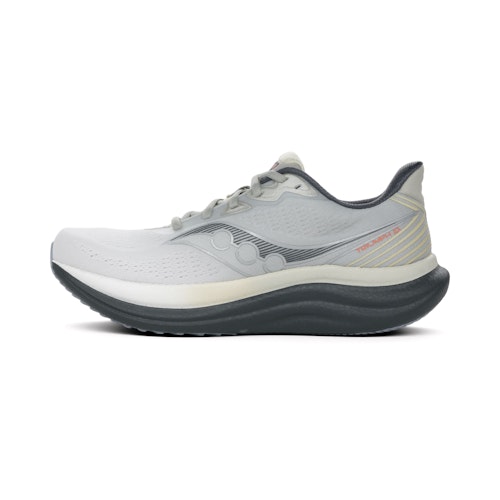 Article number: S21023-505 Article group: All-round Running Shoes Collections: Saucony Triumph Colour: Grey Gender: Men Brand: Saucony Shoe type: Neutral Cushioning: Maximum Forefoot height: 27 mm Heel height: 37 mm Offset: 10 mm Responsiveness: Moderate / maximum Support: Average Weight: 263 g Width: Normal
