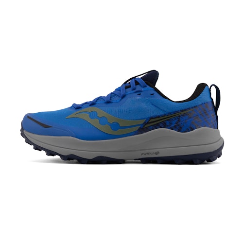 Article number: S20843-30 Article group: Trail Running Shoes Collections: Saucony Xodus Colour: Blue Gender: Men Brand: Saucony Shoe type: Neutral Cushioning: Moderate / maximum Forefoot height: 26.5 mm Heel height: 32.5 mm Offset: 6 mm Responsiveness: Minimum / moderate Support: Average Trail type: Ultra trail Width: Normal
