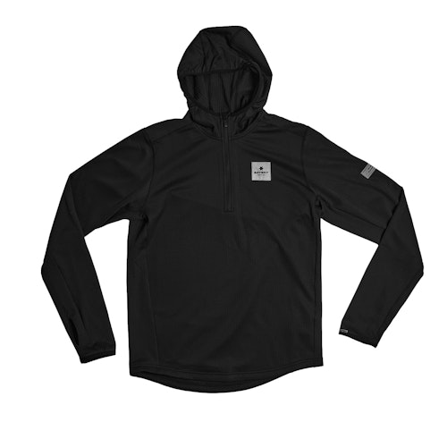 The Hooded Half Zip Pace Fleece Shirt is a long sleeve half zip running shirt. The fitted hood gives you extra protection in bad weather. The shirt is part of the 'Pace' collection. This everyday collection contains all the essentials to get through every workout in style and comfort. The items in this collection are lightweight, sweat-wicking and highly breathable. Ideal for any kind of training or race.