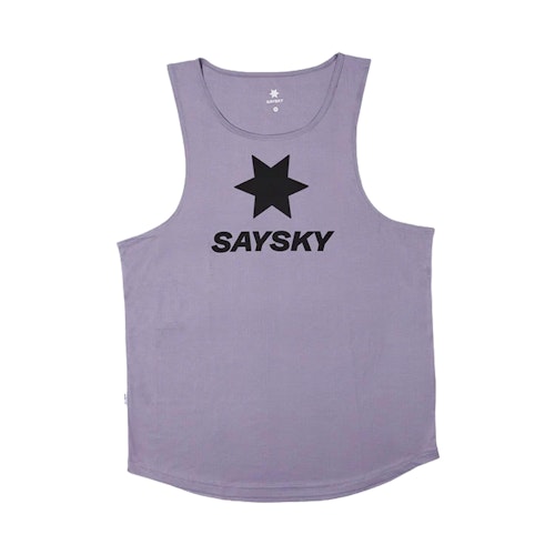 The Logo Flow Singlet is a comfortable sleeveless shirt. The singlet feels soft against the skin and has a black SAYSKY logo on the front and a white woven SAYSKY label on the back.