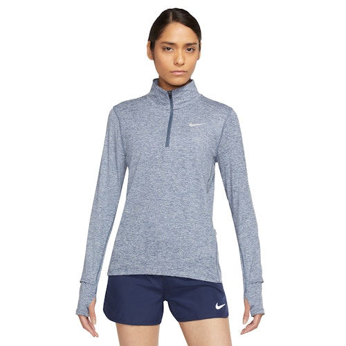 La chemise Element 1/2 Zip est une chemise de course confortable à manches longues. Il y a une fenêtre dans les manches, à travers laquelle vous pouvez vérifier votre montre. La chemise convient comme couche intermédiaire pendant les journées plus froides, mais aussi à porter seule. La technologie Nike Dri-FIT offre une bonne respirabilité, une évaporation plus rapide et un ajustement confortable.