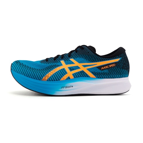 SKU: 1011B443-400 Artikelgrupp: Tävlingsskor Kollektioner: ASICS Magic Speed Färg: Blå Kön: Herr Märke: ASICS Skotyp: Neutral Dämpning: Minimum / måttlig Höjd framfot: 24 mm Hälhöjd: 31 mm Drop: 8 mm Lyhördhet: Måttlig / maximal Stöd: Lite Bredd: Normal