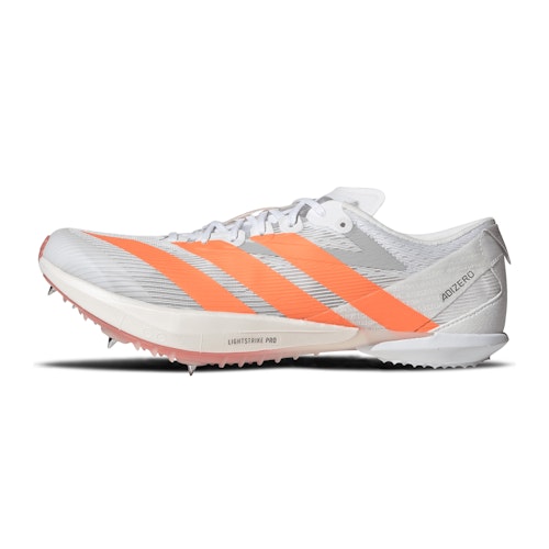 Référence: JQ5930 Type de produit: Chaussures à pointes Collections: adidas Adizero Couleur: Blanc Discipline: Demi-fond Genre: Unisexe Marque: adidas Type de chaussure: Neutre Amorti: Faible / modéré Hauteur avant-pied: 8 mm Hauteur talon: 8.5 mm Drop: 0.5 mm Réactivité: Modérée / forte Maintien: Moyen Poids: 150 g Largeur: Normal Poids: 150-200 gramme Hauteur de semelle: 10-20mm (Bas)