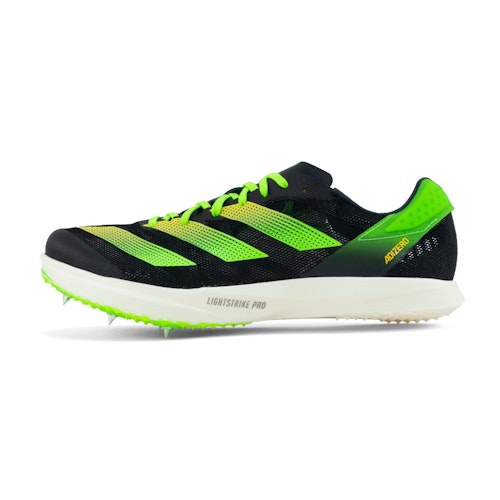 La ligne Adizero d'adidas est synonyme de vitesse et d'un poids extrêmement léger. L'Avanti TYO vous permet d'exécuter votre nouveau record grâce à la semelle intermédiaire Lightstrike Pro. Ce matériau est le matériau d'amorti le plus résistant d'adidas. Cela vous redonne de l'énergie à chaque pas et vos jambes restent fraîches plus longtemps. Alors franchissez cette ligne d'arrivée avec plus d'énergie. Pour diriger cette vitesse et cette énergie, vous avez besoin d'adhérence. Le motif en diamant sous l'avant-pied assure la traction, tandis que les six pointes vissées fournissent la traction nécessaire. Avec l'Adidas Adizero Avanti TYO, vous êtes prêt pour la bataille.