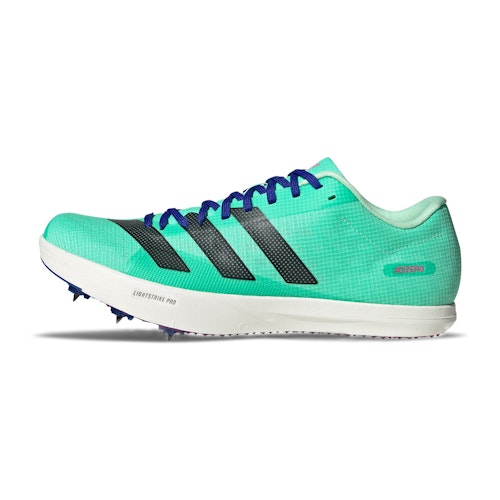 Les adidas Adizero LJ pour hommes et femmes sont des pointes neutres. Les pointes Adizero LJ sont spécialement conçues pour l'épreuve d'athlétisme du saut en longueur. Les pointes peuvent également être utilisées pour les épreuves de triple saut ou de saut à la perche. La tige Celermesh monocouche est très légère et offre un ajustement parfait. Les superpositions dans la tige offrent une stabilité supplémentaire et une bonne sensation de verrouillage.