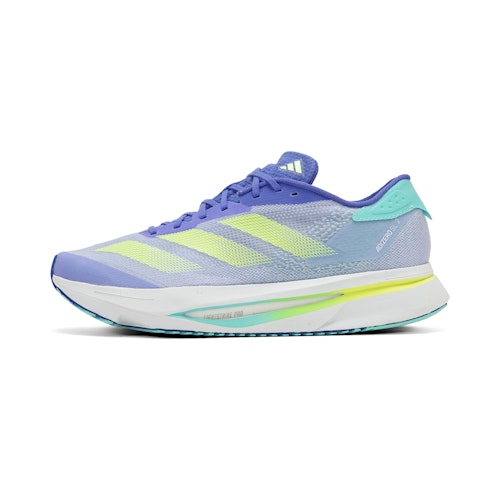 Référence: IE3396 Type de produit: Chaussures de running polyvalentes Collections: adidas Adizero Couleur: Violet Genre: Homme Marque: adidas Type de chaussure: Neutre Amorti: Faible / modéré Hauteur avant-pied: 26 mm Hauteur talon: 36 mm Drop: 10 mm Réactivité: Modérée / forte Maintien: Moyen Poids: 232 g Largeur: Normal
