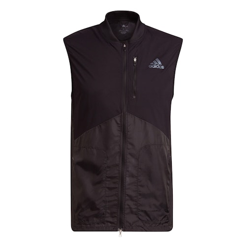 Le gilet Adizero est un gilet de course à pied doté d'un revêtement déperlant longue durée à l'avant et d'une ventilation à l'arrière pour vous garder au sec.