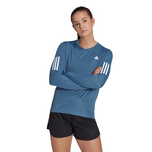 La chemise Own The Run est une chemise de course à manches longues. La matière Climacool offre une ventilation optimale et évacue efficacement l'humidité. Le matériau recyclé est doux sur la peau et offre une liberté de mouvement optimale. Les trous pour les pouces dans les manches maintiennent le maillot en place pendant la course.