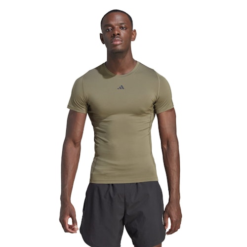 Le T-shirt TechFit est une chemise de course à manches courtes. Le t-shirt a une coupe ajustée pour soutenir les muscles et est antimicrobien, qui combat les bactéries responsables des odeurs. Il contient également la technologie Aeroready, qui régule l'humidité pour vous donner une sensation sèche et confortable. Partiellement fabriqué à partir de matériaux recyclés.