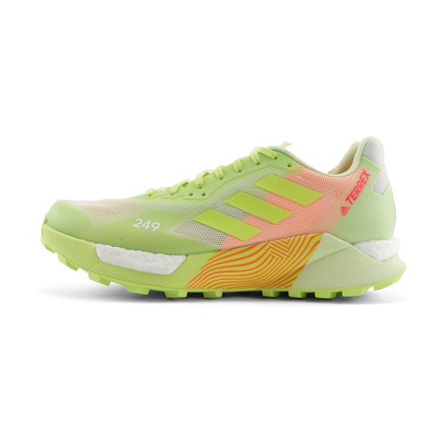 Les adidas Terrex Agravic Ultra pour femmes sont des chaussures de trail neutres spécialement conçues pour courir de très longues distances. Avec l'Agravic Ultra, vous pouvez parcourir des distances ultra sans avoir à vous soucier de vos chaussures. La tige Primegreen Mesh est hautement respirante et aide à garder les pieds au frais, mais résiste également à l'usure et aide à vous protéger des bâtons et des pierres rencontrés sur vos sentiers. Le renfort en TPU au milieu du pied offre un soutien supplémentaire au pied. À l'avant-pied, la tige est un peu plus spacieuse, permettant ainsi que à vos orteils de se déplacer librement pendant vos activités. La tige a une languette rembourrée qui aide à répartir la pression des lacets sur les pieds et assure une sensation de confort.