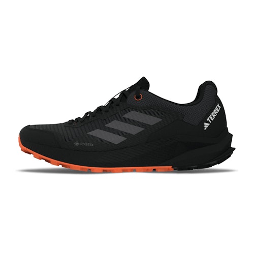La tige en mesh du Terrex Trailrider maintient la chaussure respirante et confortable. La chaussure est également dotée d'une membrane Gore-Tex® et empêche la pluie, la boue et les débris de pénétrer pendant toute aventure. De plus, la tige est synthétique avec une couche protectrice de TPU, ce qui rend la chaussure résistante à l'usure et adaptée aux terrains accidentés. Enfin, adidas utilise 50 % de matériaux recyclés dans la tige pour réduire son impact sur l'environnement. La languette plissée de cette chaussure est fixée des deux côtés sur la tige, afin qu'aucune saleté ne puisse pénétrer dans la chaussure et que la languette reste centrée.