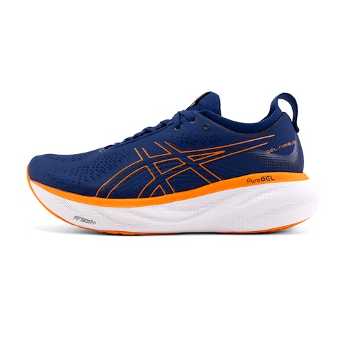 Référence: 1011B547-403 Type de produit: Chaussures de running polyvalentes Collections: ASICS Gel Nimbus Couleur: Bleu Genre: Homme Marque: ASICS Type de chaussure: Neutre Amorti: Modéré / maximal Hauteur avant-pied: 33,5 mm Hauteur talon: 41,5 mm Drop: 8 mm Réactivité: Faible / modérée Maintien: Moyen Poids: 298 g Largeur: Normal