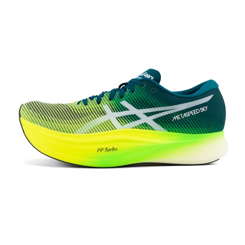 Les ASICS Metaspeed Sky + sont des chaussures de compétition pour le coureur neutre. Le Metaspeed Sky+ est conçu pour le « coureur de foulée ». Ce sont des coureurs qui tirent leur vitesse de l'allongement de leurs foulées. Cette chaussure de compétition est adaptée pour battre des records sur le 5 km jusqu'au marathon inclus.