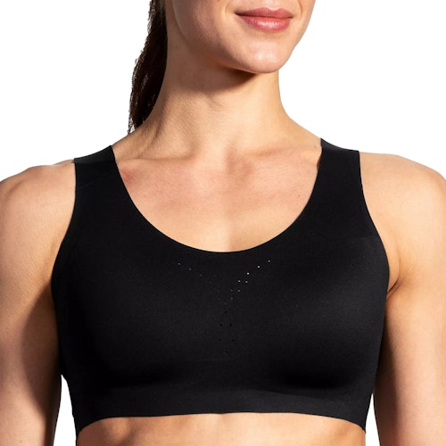 La sangle pectorale est entièrement intégrée à la brassière de sport et offre le maintien nécessaire. Le matériau doux empêche les irritations causées par les frottements. Le soutien-gorge contient de petites perforations dans le matériau pour une respirabilité élevée et une ventilation optimale. Les bonnets préformés offrent un confort grâce au léger rembourrage et contribuent au maintien de la poitrine. Le matériau DriLayer HorsePower Mesh évacue efficacement l'humidité et sèche rapidement.Brooks propose 2 collections de soutiens-gorge de sport ; la collection Dare et la collection Drive. La collection Dare se caractérise par des bonnets intégrés et préformés tandis que la collection Drive offre des bonnets de compression. Ce sont des bonnets souples qui accompagnent le mouvement et maintiennent les seins en exerçant une pression. Les bonnets de la collection Drive sont amovibles