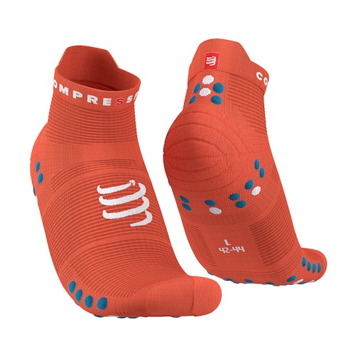 Les Pro Racing Socks V4.0 Run Low sont des chaussettes confortables, à faible compression, idéales pour votre course quotidienne. Elles contiennent des inserts en silicone autour de l'intérieur de l'ourlet qui empêchent la chaussette de glisser vers le bas.