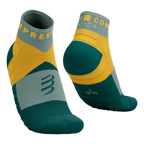 Si vous recherchez les chaussettes de course adaptées à vos activités tout-terrain, vous recherchez les chaussettes Ultra Trail Low de Compressport ! Ces chaussettes apportent stabilité, amorti et fraîcheur à vos pieds lors de vos trails. La pointe renforcée en tissu éponge protège vos orteils et vos ongles lors des descentes raides et les épaisses bandes en tissu éponge sous les pieds et au niveau du tendon d'Achille absorbent les chocs du terrain et la pression de vos chaussures.