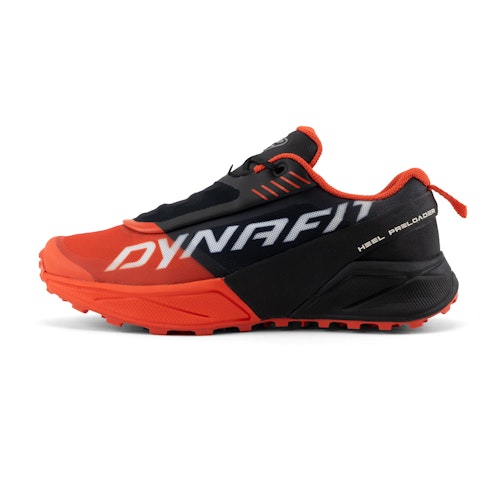 La conception de la semelle et de la tige vise à offrir un confort durable. La tige enveloppe les pieds sans les pincer et laisse de l'espace lorsque les pieds en ont besoin. Lors de la course sur de très longues distances, les pieds se dilatent légèrement. La tige bouge avec les pieds sans compromettre le soutien. Le Dynafit Ultra 100 possède un système de laçage invisible. Les lacets ne sont pas visibles, grâce à une fine couche de tissu. Cette couche empêche la poussière, le sable et les pierres d'entrer. Il empêche également les lacets de se coincer dans les pierres ou les branches.