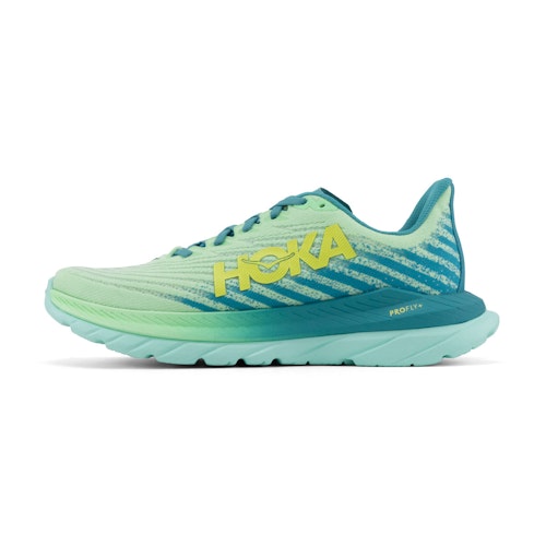 La HOKA Mach 5 est une chaussure rapide conçue pour les coureurs qui souhaitent tirer le meilleur parti de leur entraînement et de leurs compétitions. Le Mach est un véritable démon de vitesse qui fonctionne mieux dans les courses allant jusqu'au semi-marathon et pendant l'entraînement au rythme et par intervalles. Faites passer vos performances au niveau supérieur avec cette chaussure de compétition ! Semelle intermédiairePour rendre vos courses aussi confortables que possible, HOKA a ajouté PROFLY™. La semelle intermédiaire PROFLY™ assure un atterrissage amorti et une poussée réactive, vous offrant une sensation de course unique à la fois douce et vive. PROFLY™ est une semelle intermédiaire légère et réactive avec une couche ultra douce sous le pied. La semelle intérieure en EVA offre un ajustement flexible et un soutien supplémentaire pendant la course. TigeGrâce à la tige en maille jacquard avec des fils texturés, la chaussure est hautement respirante et permet à la transpiration de s'échapper, gardant vos pieds au frais pendant la course. Parce que le mesh épouse chaque forme du pied, il offre confort et maintien. Un renfort a été ajouté au bas du contrefort du talon, tandis que le haut reste flexible, doux et confortable, afin que l'os du talon ne subisse pas de pression. La languette plissée de cette chaussure est reliée à la tige des deux côtés, empêchant la saleté de pénétrer dans la chaussure et gardant la languette centrée. Semelle extérieurePendant la course, la chaussure offre une bonne adhérence et traction grâce à la semelle extérieure en caoutchouc. Conçu avec une adhérence maximale, un amorti optimal et une technologie légère, le HOKA Mach 5 vous aide à vous rapprocher de la ligne d'arrivée à chaque pas.