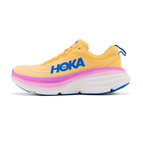 Les HOKA Bondi 8 sont des chaussures de course polyvalentes pour le coureur neutre. La Bondi est très reconnaissable à sa semelle épaisse et offre beaucoup d'amorti lors de la course sur route. Cette chaussure de course convient aux longues distances, à l'entraînement de récupération et aux entraînements quotidiens.