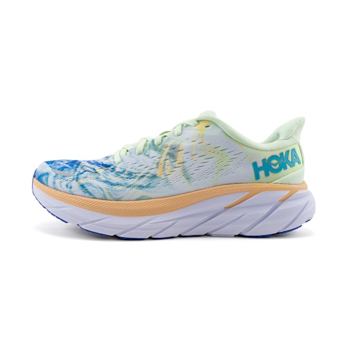 Référence: 1119394-TGT Type de produit: Chaussures de running polyvalentes Collections: HOKA Clifton Couleur: Multicolore Genre: Femme Marque: HOKA Type de chaussure: Neutre Amorti: Maximal Hauteur avant-pied: 21 mm Hauteur talon: 26 mm Drop: 5 mm Réactivité: Modérée Maintien: Moyen Largeur: Normal