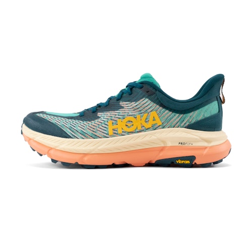Pour vous donner de l'adhérence lors de votre prochaine course de trail, la Mataspeed Speed 4 est dotée d'une semelle extérieure Vibram Megagrip Litebase. Litebase est plus léger que le caoutchouc Vibram ordinaire, mais avec la même durabilité. Les crampons de 5 mm vous offrent une adhérence lors de la marche dans des conditions sèches et humides. Le HOKA Mafate Speed 4 est idéal à porter lors de la course sur des sentiers techniques.