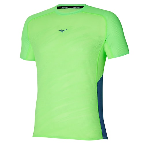 Le T-shirt Aero est une chemise de course à manches courtes. Le T-shirt est issu de la ligne Premium de Mizuno. Cela signifie que des matériaux de très haute qualité ont été utilisés et qu'une grande attention a été portée aux détails. Le T-shirt est conçu pour être porté lors d'entraînements intenses. Le matériau est très léger et respire très bien. Cela vous permet de rester frais et frais pendant la marche.