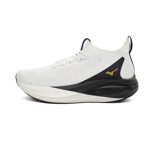 La couche supérieure de la semelle intermédiaire est composée de mousse Mizuno Enerzy NXT (infusée d'azote). Cette mousse offre un amorti souple et un excellent retour d'énergie. La couche inférieure est également composée de mousse Mizuno Enerzy NXT avec une base en EVA, pour une stabilité accrue. La semelle extérieure, de forme arrondie, est dotée de crampons et d'un talon très surélevé. Ceci assure une réception en douceur sur le médio-pied et l'avant-pied, même en cas de fatigue. Ce système, appelé Smooth Speed Assist, garantit une transition optimale jusqu'à la ligne d'arrivée. La semelle intermédiaire intègre également une plaque Wave, une plaque en plastique faisant partie de la technologie Wave. Ondulée, cette plaque assure une réception stable et un rebond supplémentaire lors de la propulsion.Supérieur