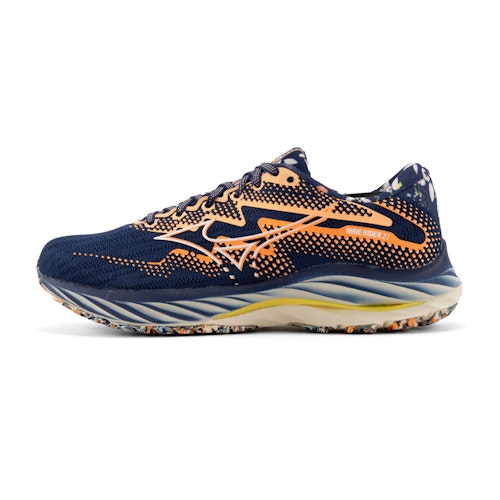 Le Wave Rider 27 avec mousse Enerzy offre un excellent amorti et un excellent retour d'énergie tout en offrant une bonne durabilité. Cela signifie que la chaussure conserve longtemps sa valeur d'amorti. Une plaque Wave a également été placée dans la semelle intermédiaire, qui est une plaque en plastique faisant partie de la technologie Wave. La plaque est ondulée et assure un atterrissage stable et une résilience supplémentaire lors du décollage. Enfin, la chaussure possède une semelle intérieure amovible en matériau extrêmement doux.
