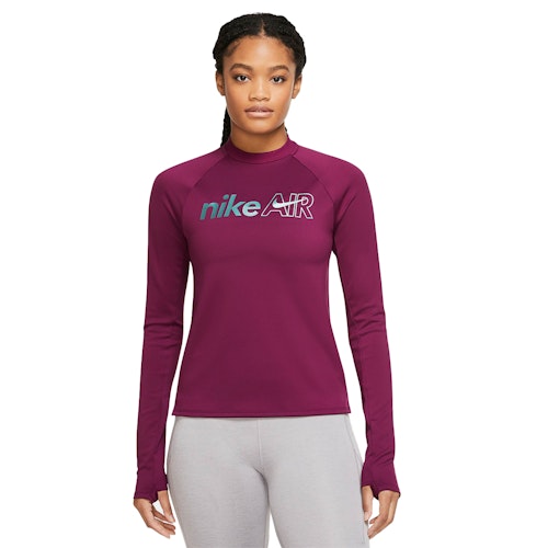 La couche intermédiaire Nike Air Dri-FIT pour femme est un haut à manches longues. Le haut est idéal comme première couche ou couche intermédiaire lorsque les températures chutent. La technologie Dri-FIT de Nike évacue efficacement la transpiration de la peau vers l'extérieur du haut, vous gardant ainsi au sec et à l'aise. Les manches et le devant sont en tricot brossé qui est doux et lisse pour la peau. La maille à l'arrière assure une excellente ventilation. Les manches ont des trous pour les pouces pour une couverture et une chaleur supplémentaires.