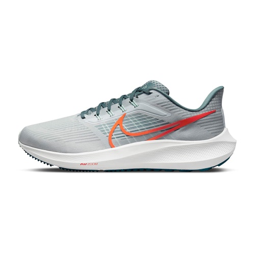 Un rembourrage supplémentaire au niveau de la languette et du col permet à vos pieds de rester confortables. La tige en maille garde vos pieds au frais pendant que vous courez vos kilomètres. Nike a placé une maille spéciale sur l'empeigne, qui est plus forte et plus flexible que la maille ordinaire, pour une sensation de légèreté et de ventilation. La semelle intermédiaire est de type Nike React, une mousse légère et résistante pour une expérience de course fluide et réactive. Le matériau absorbe l'impact lors de l'atterrissage et le répartit sur vos pieds. Au décollage, vous récupérez cette énergie pour une sensation énergique. La Pegasus 39 est conçue pour chaque type de coureur neutre, que vous soyez un coureur à l'avant-pied, au milieu du pied ou à talon.
