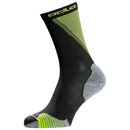 Les chaussettes Odlo Ceramicool Crew pour hommes et femmes sont des chaussettes de course confortables. Les chaussettes sont spécialement conçues pour les coureurs. La technologie Ceramicool dans les chaussettes garde les pieds au frais grâce à des particules de céramique dans les chaussettes qui refroidissent efficacement la peau. L'humidité est efficacement évacuée et les chaussettes offrent une grande respirabilité. Les chaussettes sont très rembourrées au talon et aux orteils pour plus de soutien et de protection.